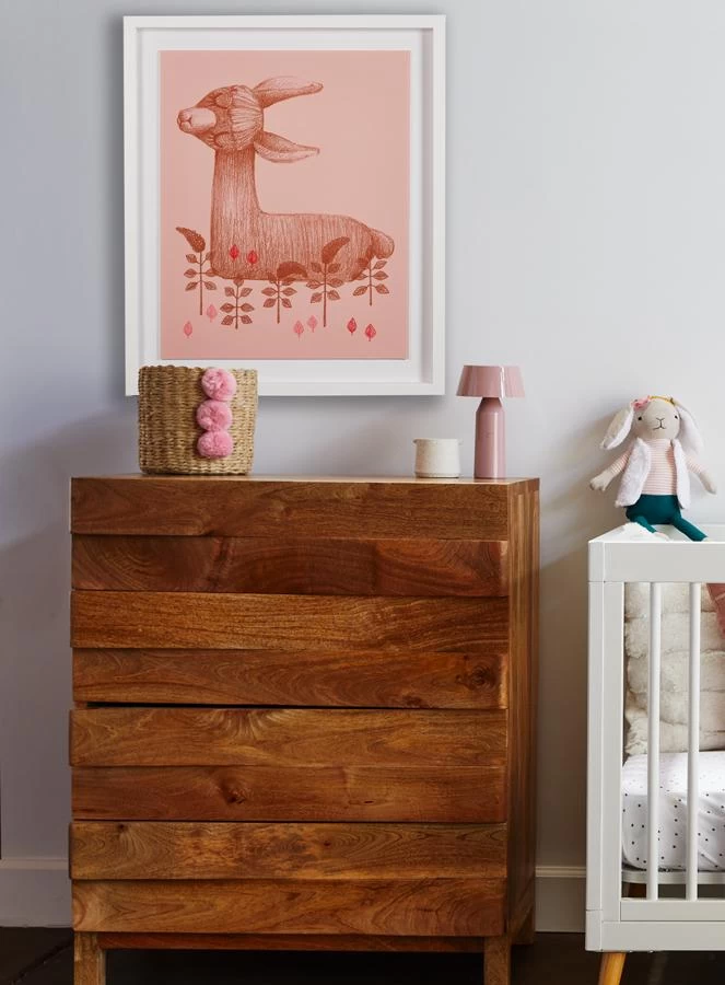 She is graceful and romantic. A vintage inspired hand drawn Llama printed on matte paper, floated on a shadowbox mat.