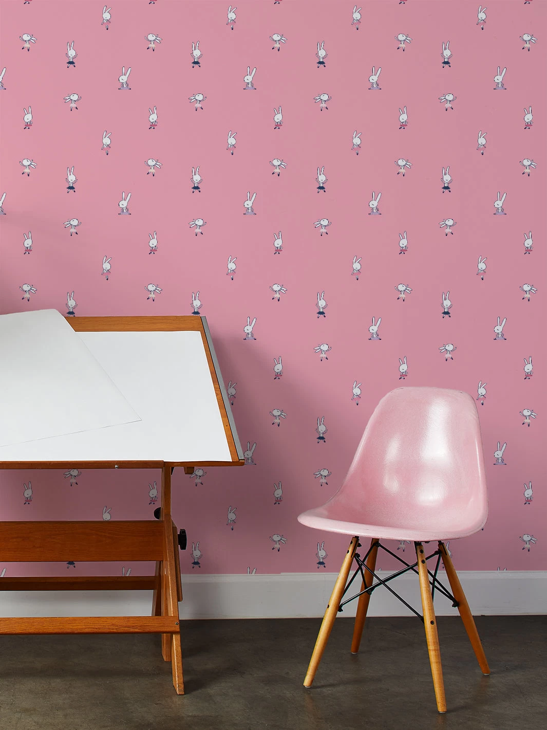 ‘Ballet Bunnies’ Wallpaper By Tea Collection – Bubblegum