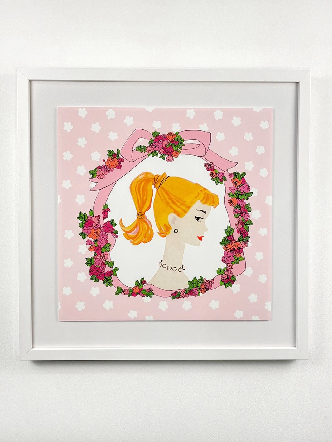 Our Barbie™ vintage art series was developed from the the Barbie™ archives highlighting midcentury fashions with a touch of glam. This unique piece is printed and floated on a white mat to add the perfect amount of fabulousness to your room.