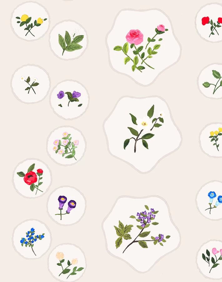 Join us and marvel at the array of pressed flowers collected for our Bouvier’s Botanical colorful & charming wallpaper design. Adorn your walls with sweet florals with the hint of a subtle stripe in a magnolia cream shade.