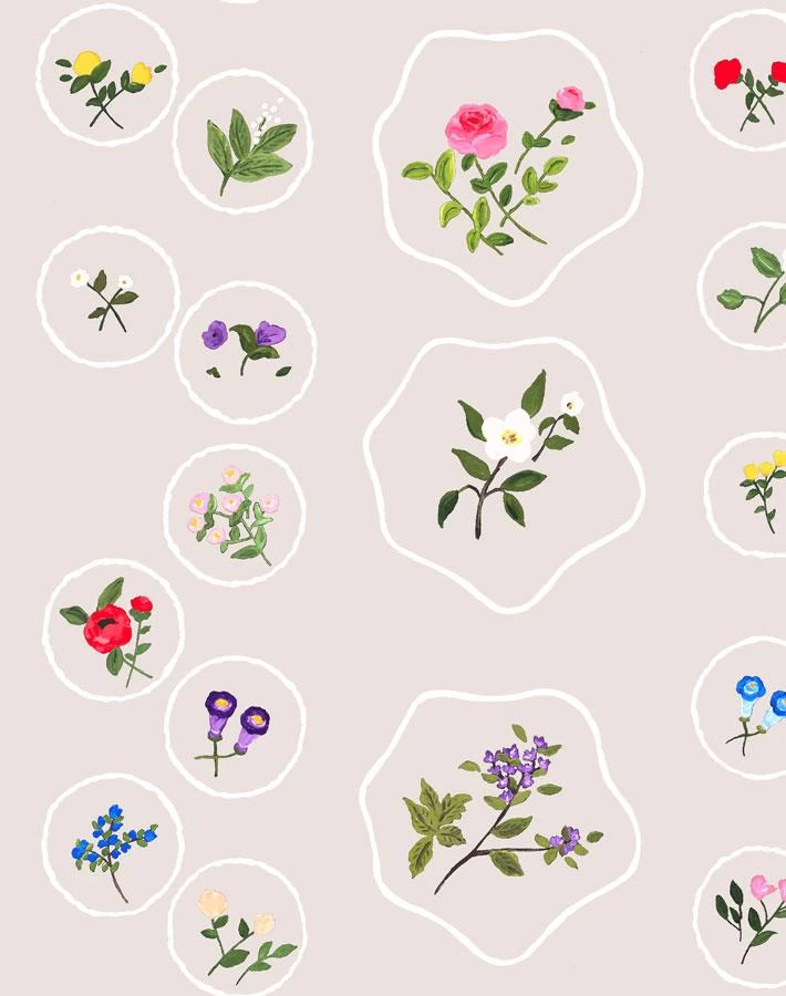 Join us and marvel at the array of pressed flowers collected for our Bouvier’s Botanical colorful & charming wallpaper design. Adorn your walls with sweet florals with the hint of a subtle stripe in a pale oyster shade.