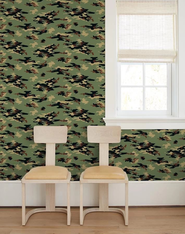 Renowned designer Nathan Turner collaborated with us on this graphic camouflage wallpaper. This wallpaper is our elegant take on the classic camo print, perfect for adding a fun and psychedelic piece of art to your walls.