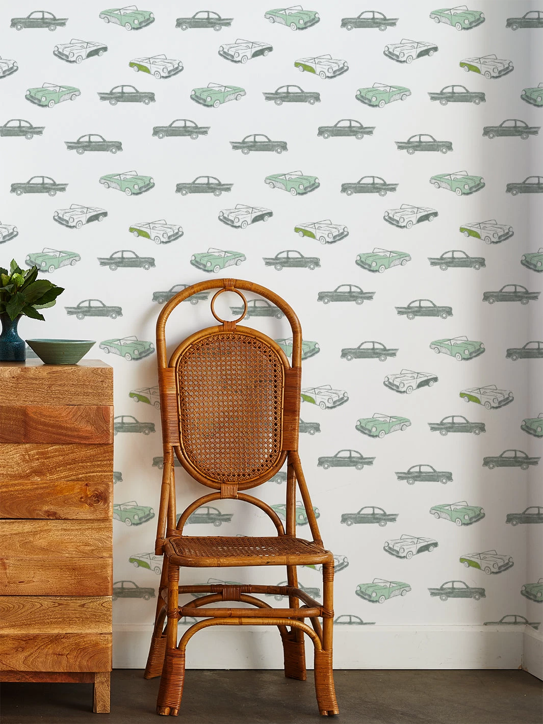 ‘Classic Cars’ Wallpaper By Tea Collection – Aventurine