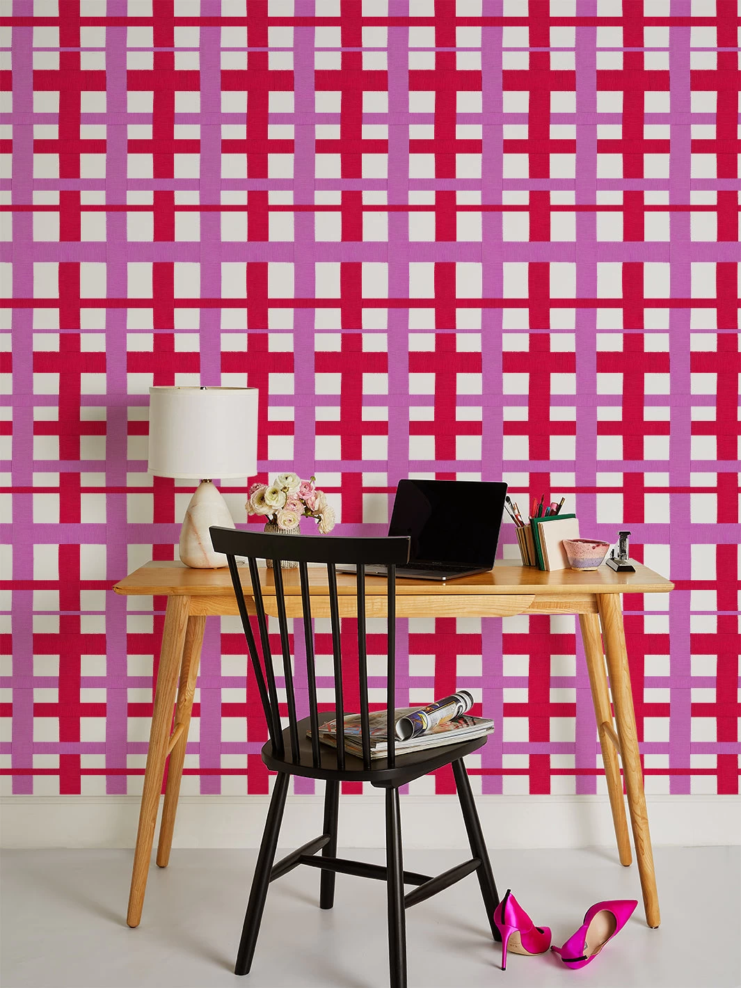 ‘Crosstown Plaid On White’ Wallpaper By Sarah Jessica Parker – Geranium Lilac