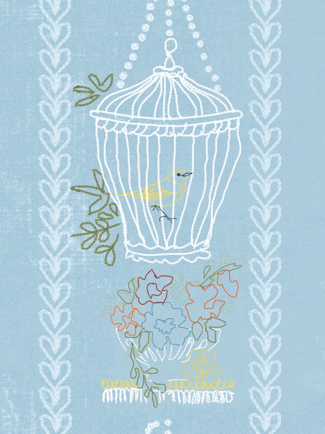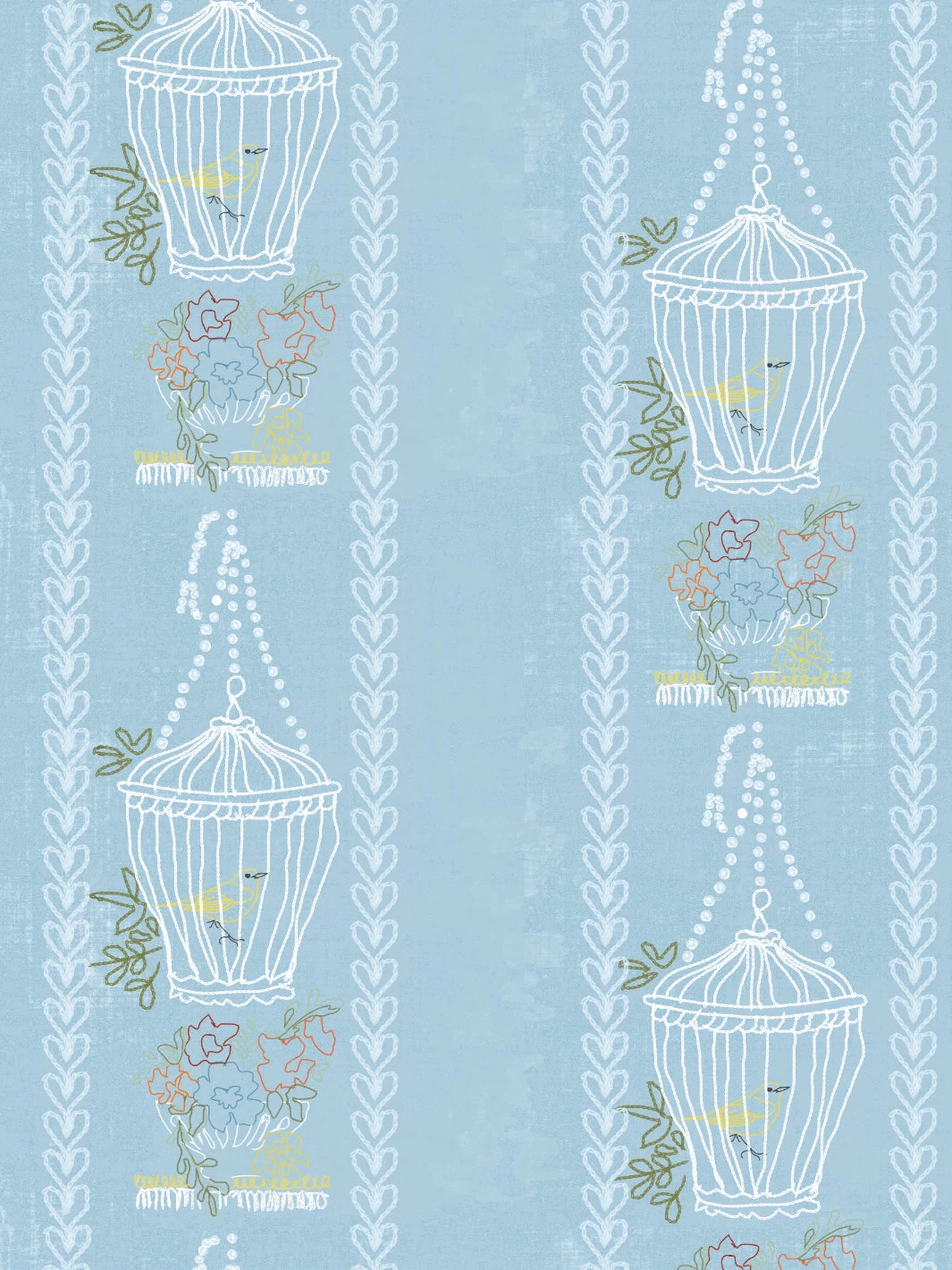 ‘Embroidered Birdcages’ Wallpaper By Lingua Franca – Blue