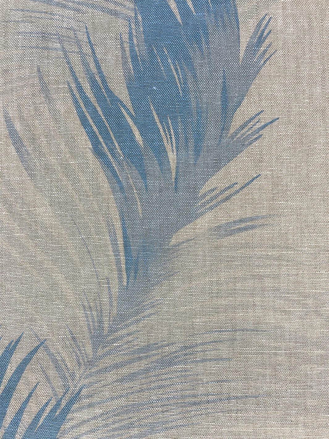 ‘Fabric By The Yard – Belafonte Palm – Blue On Flax Linen