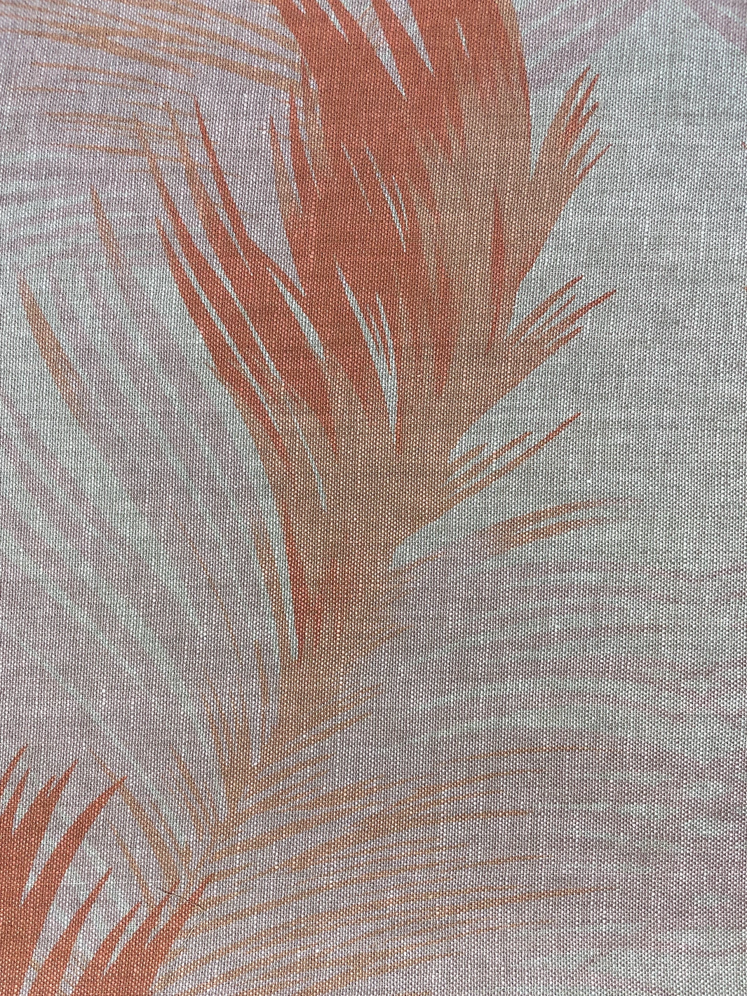 ‘Fabric By The Yard – Belafonte Palm – Peach On Flax Linen