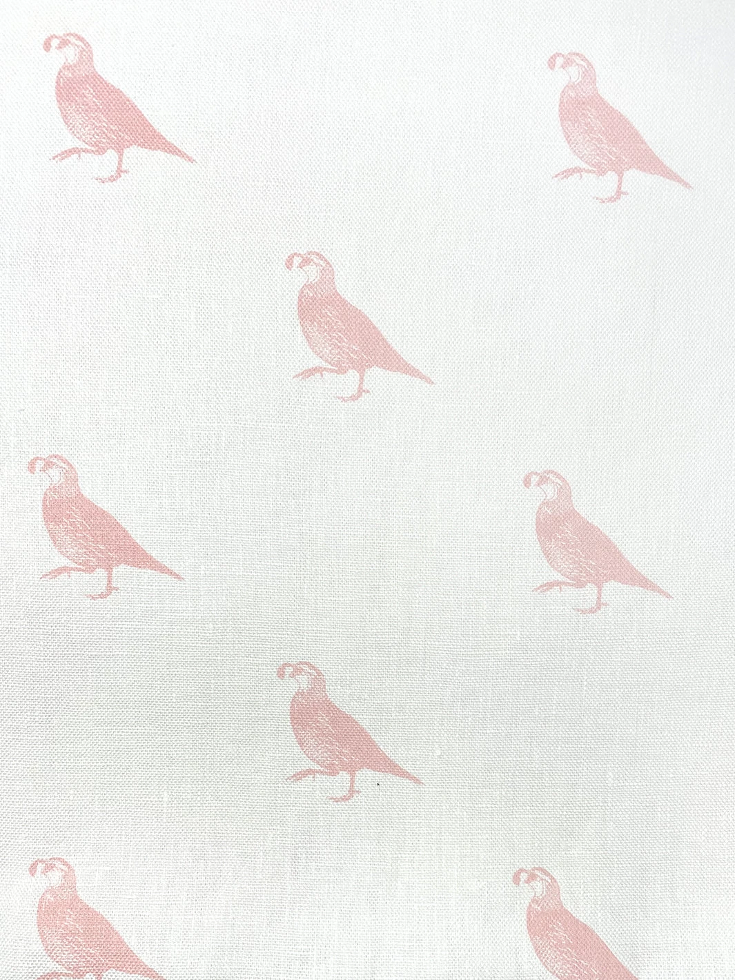 ‘Fabric By The Yard – California Quail – Pink On Linen