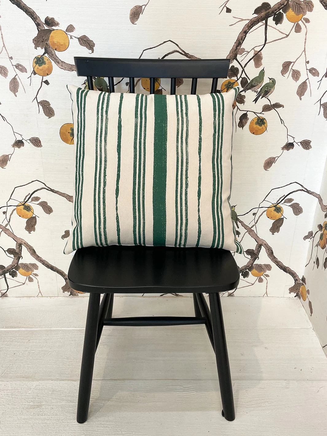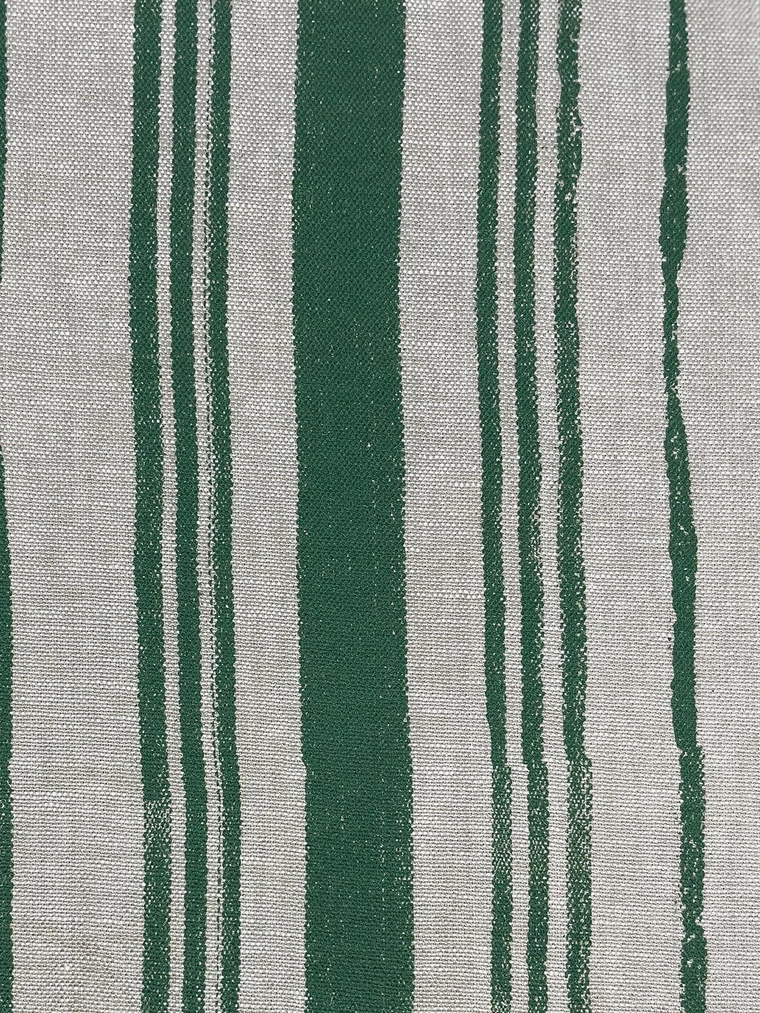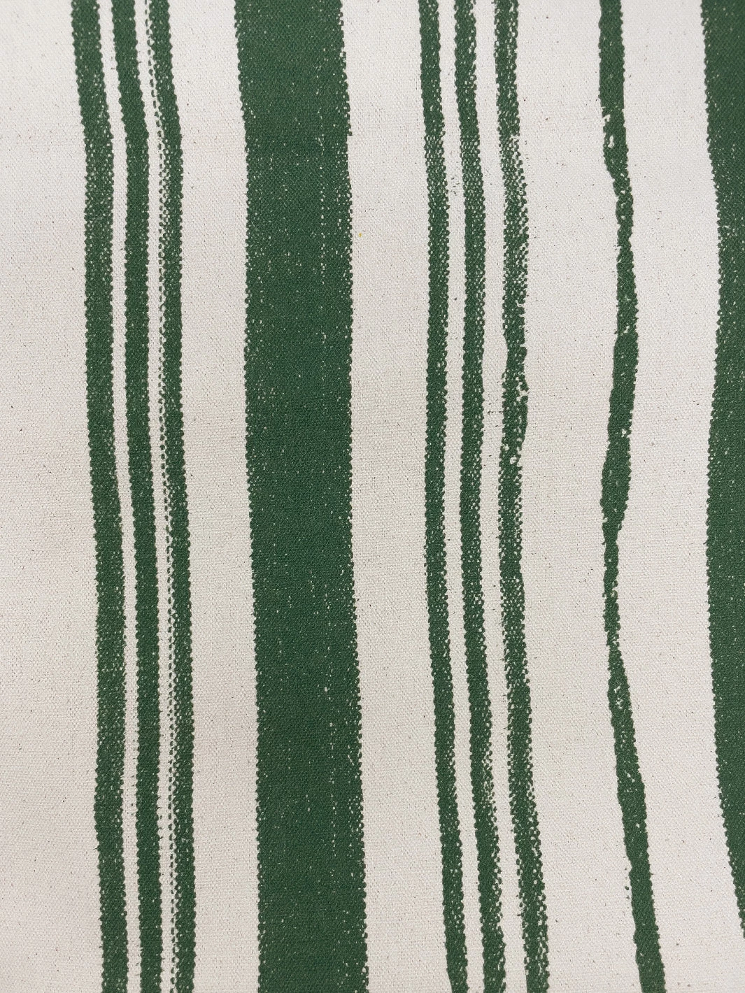 ‘Fabric By The Yard – Painted Stripes – Green On Raw Canvas