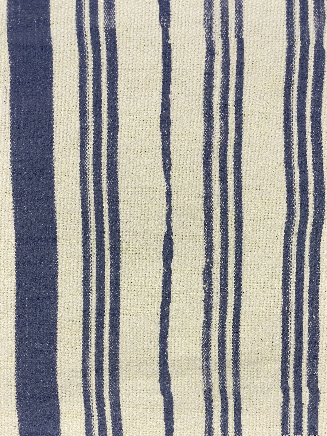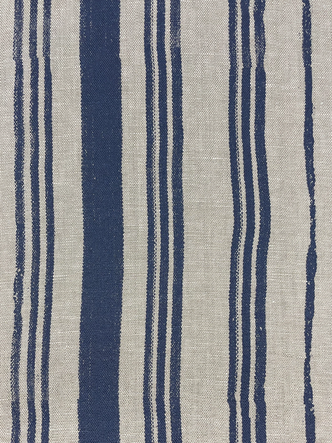 ‘Fabric By The Yard – Painted Stripes – Navy On Flax Linen
