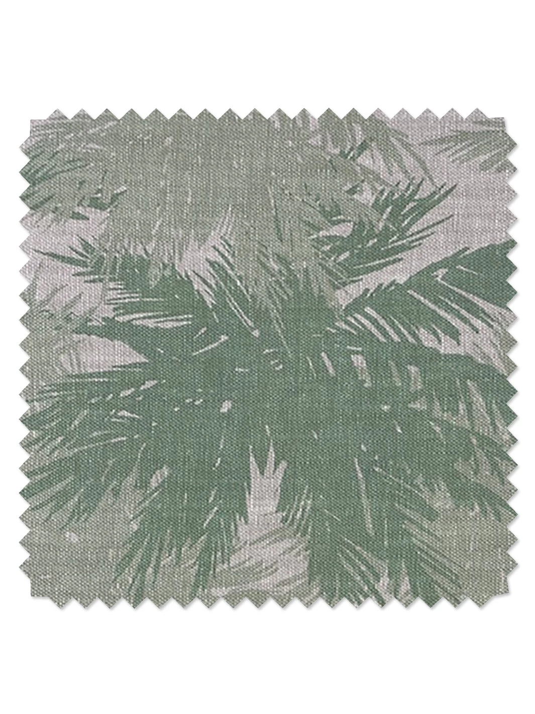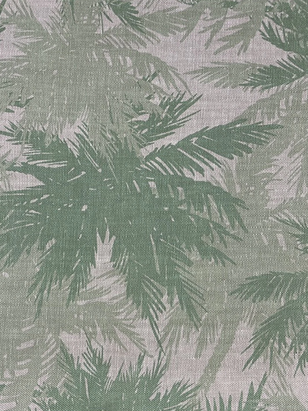 ‘Fabric By The Yard – Palm Shuffle – Green On Flax Linen