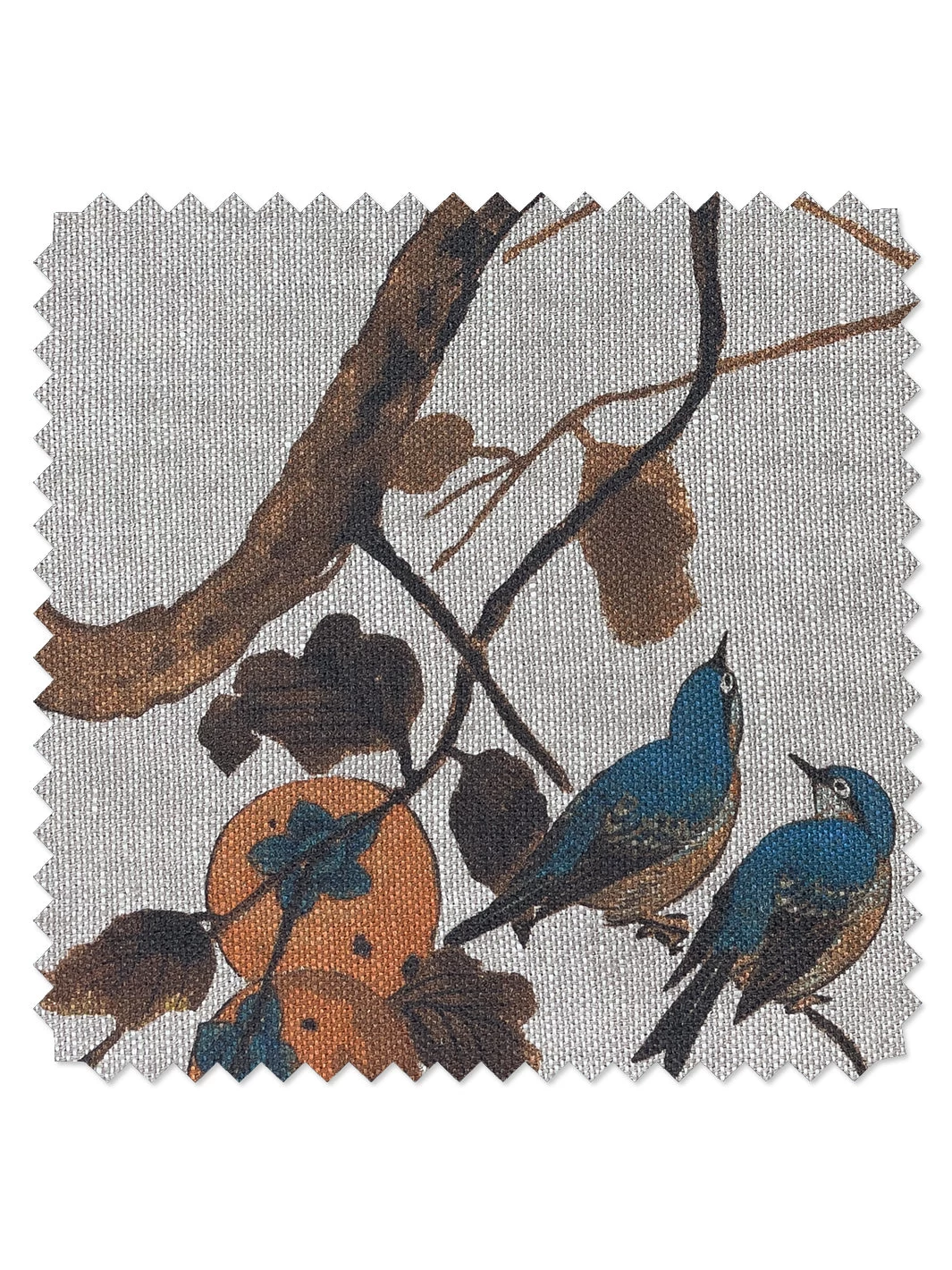 ‘Fabric By The Yard – Persimmon Birds – Washed Sienna On Flax Linen