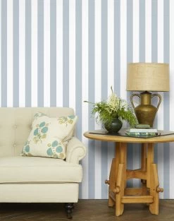 ‘Fabric By The Yard – Yorkshire Stripe – Cornflower On Organic Twill