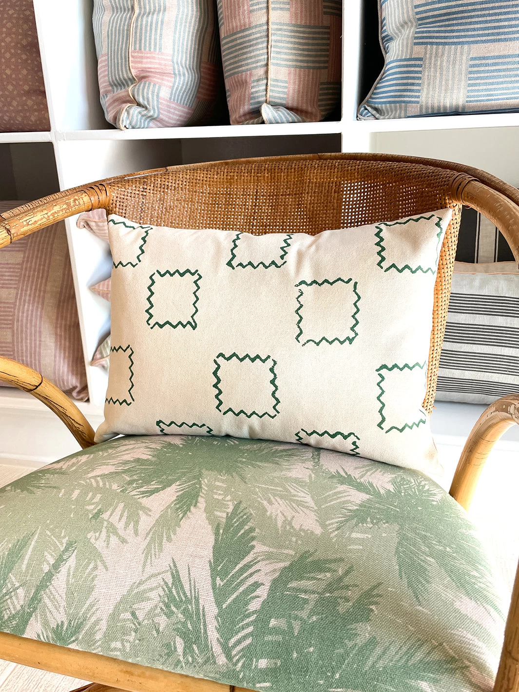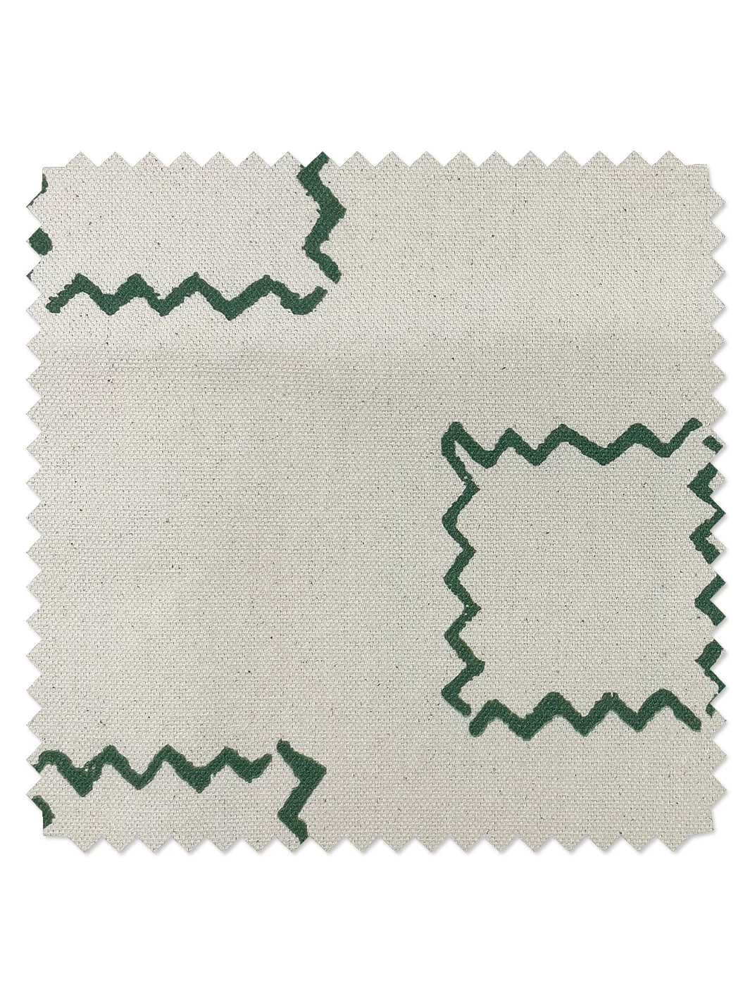‘Fabric By The Yard – Zag Squares – Green On Raw Canvas