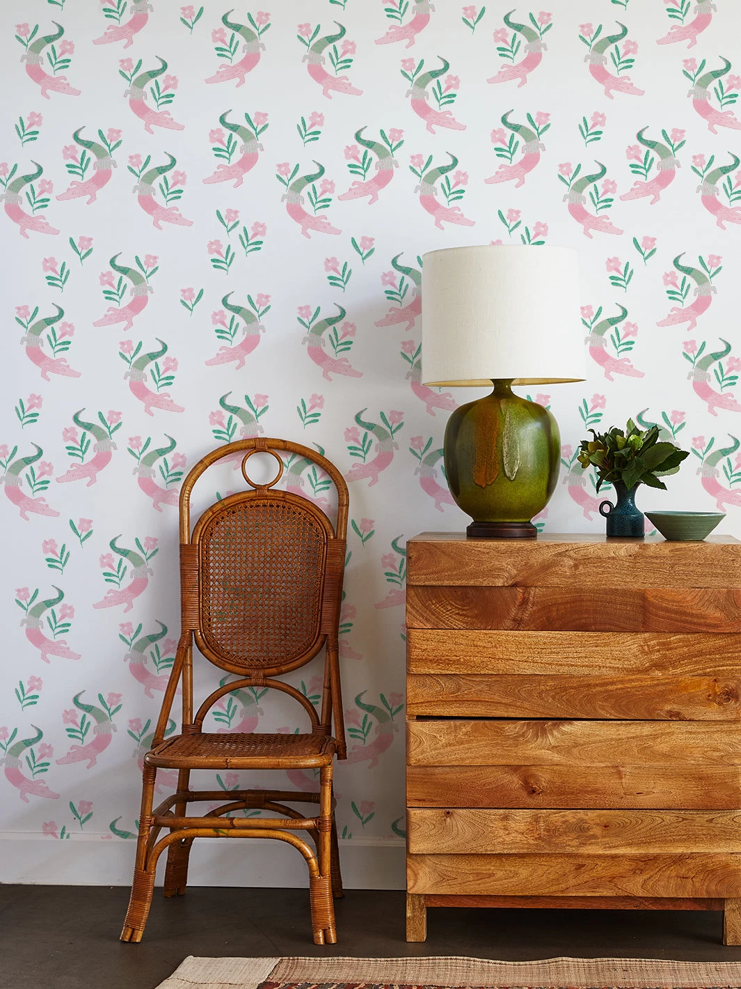 Be the first to review “‘Gator Garden’ Wallpaper By Tea Collection – Pink” Cancel reply