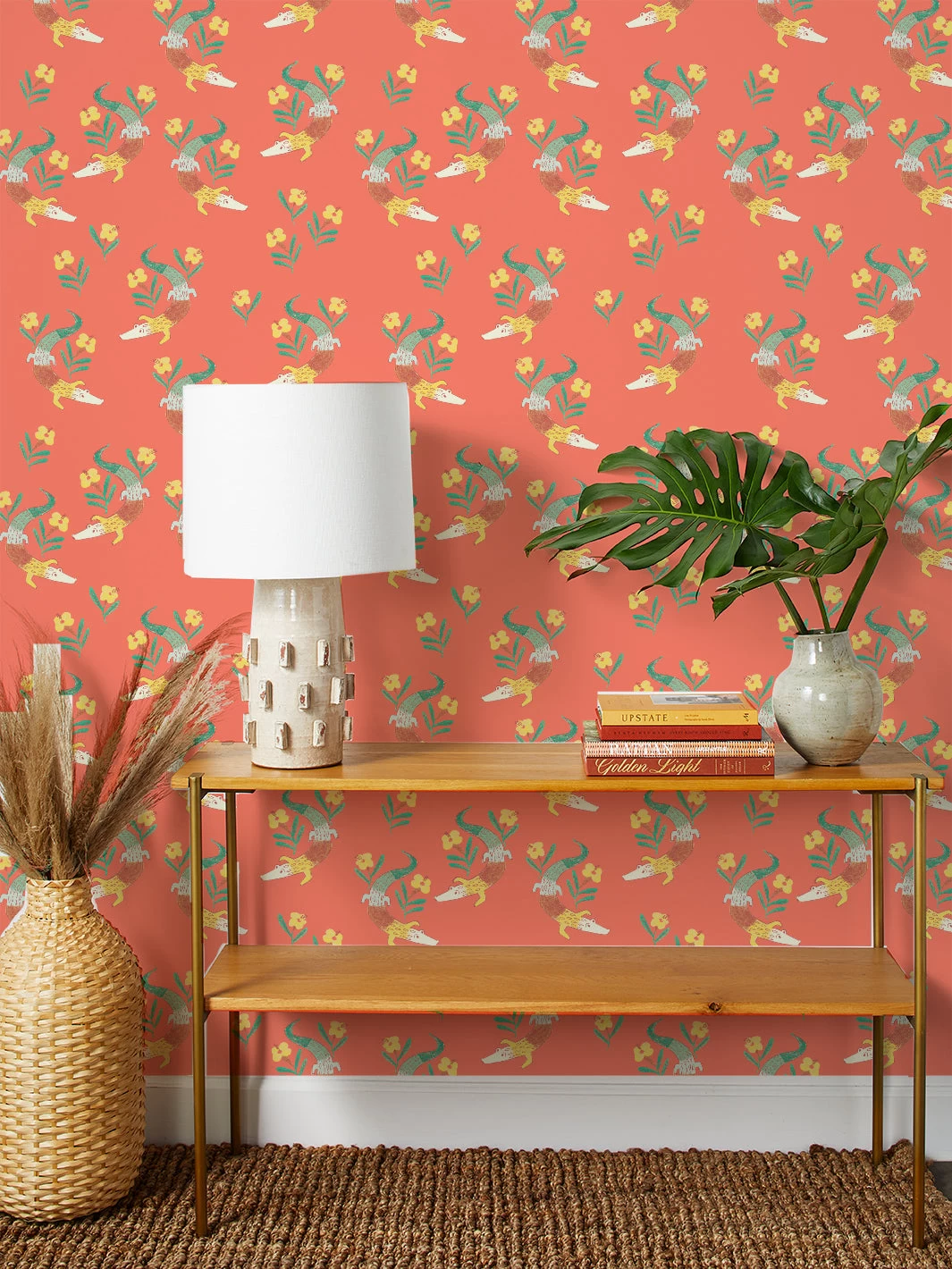 Be the first to review “‘Gator Garden’ Wallpaper By Tea Collection – Watermelon” Cancel reply