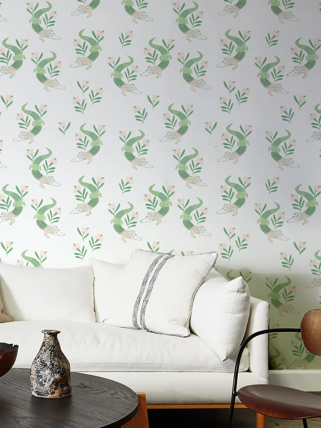 Be the first to review “‘Gator Garden’ Wallpaper By Tea Collection – White” Cancel reply