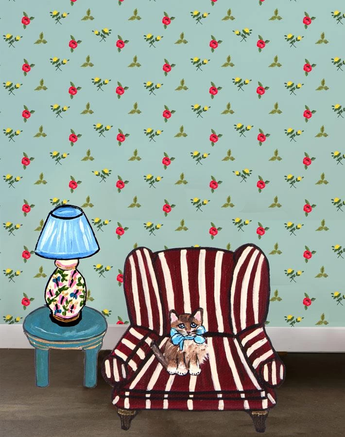 The C.A.B. x Wallshøppe collection features hand-painted wallpaper designs and pet portraits inspired by vintage textiles, fashion collections from the past and present, and the daydreams of domesticated creatures.