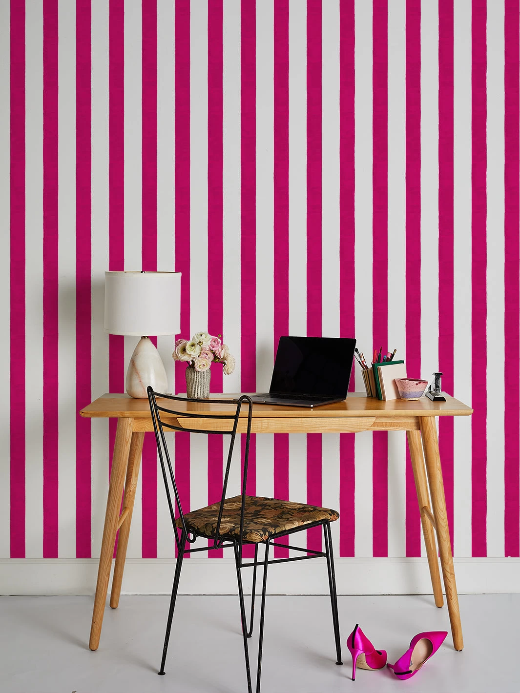 ‘Grosgrain Stripe On White’ Wallpaper By Sarah Jessica Parker – Raspberry