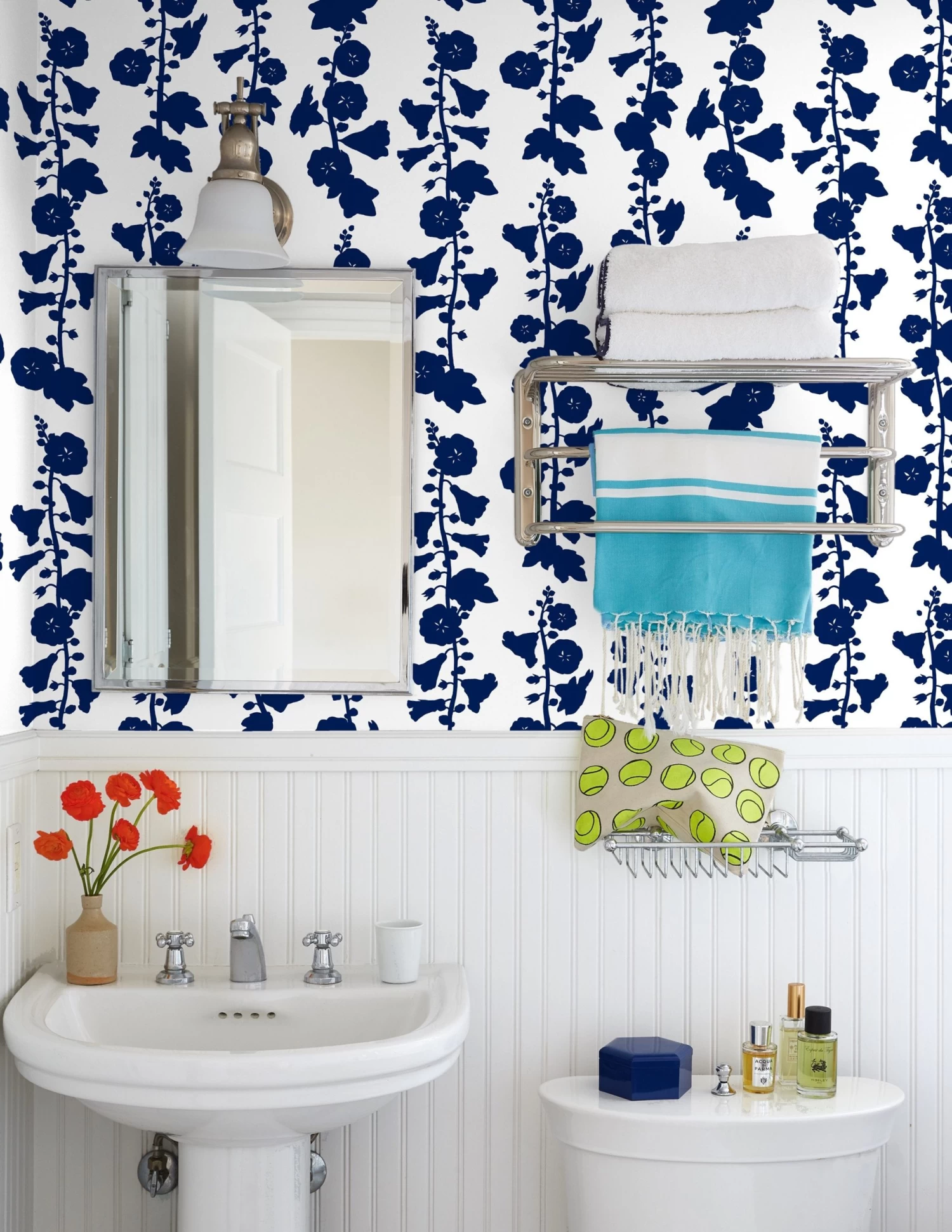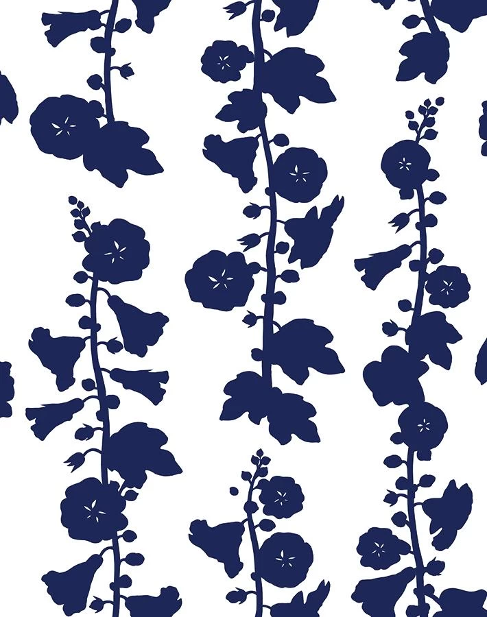‘Hollyhock’ Wallpaper By Clare V. – Navy