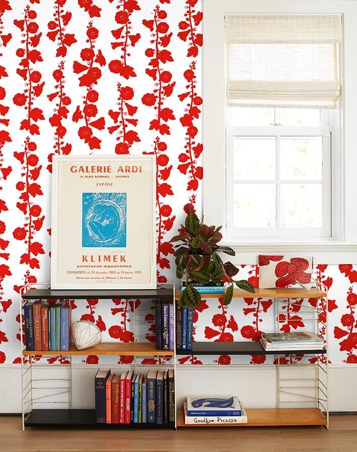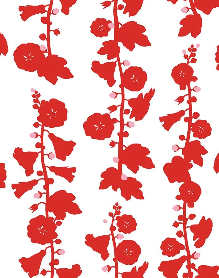 ‘Hollyhock’ Wallpaper By Clare V. – Red