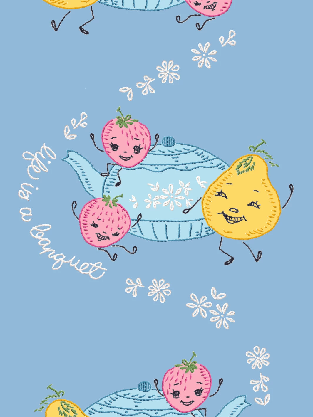 ‘Life Is A Banquet Scroll’ Wallpaper By Lingua Franca – Cornflower