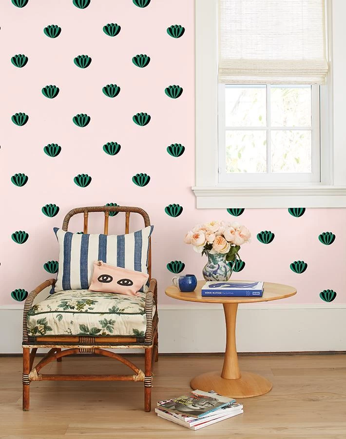 ‘Lotus’ Wallpaper By Clare V. – Emerald / Shell