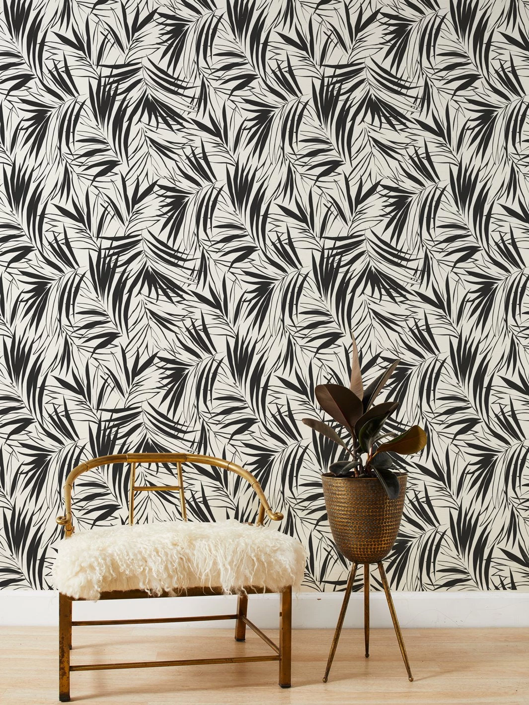 ‘Majesty Palm’ Grasscloth Wallpaper By Wallshoppe – Black