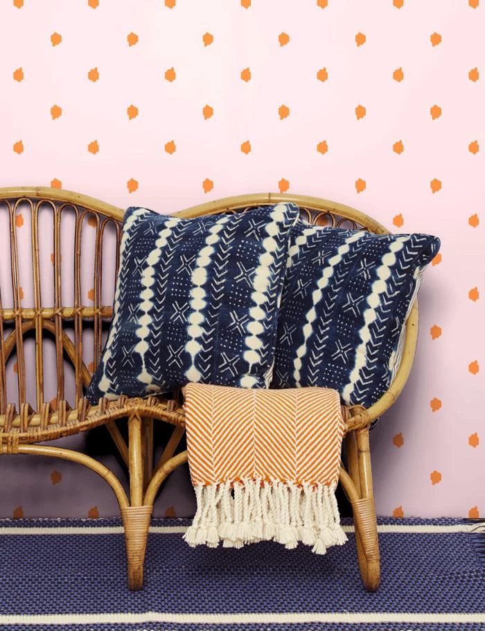 This freehand playful exotic dot print creates a colorful vibrancy to any room needing that extra pop. Uncomplicated and simple in style, the Medina Dot print brings a sense of high design quality to your living space, work area or entryway to brighten up plain old walls.