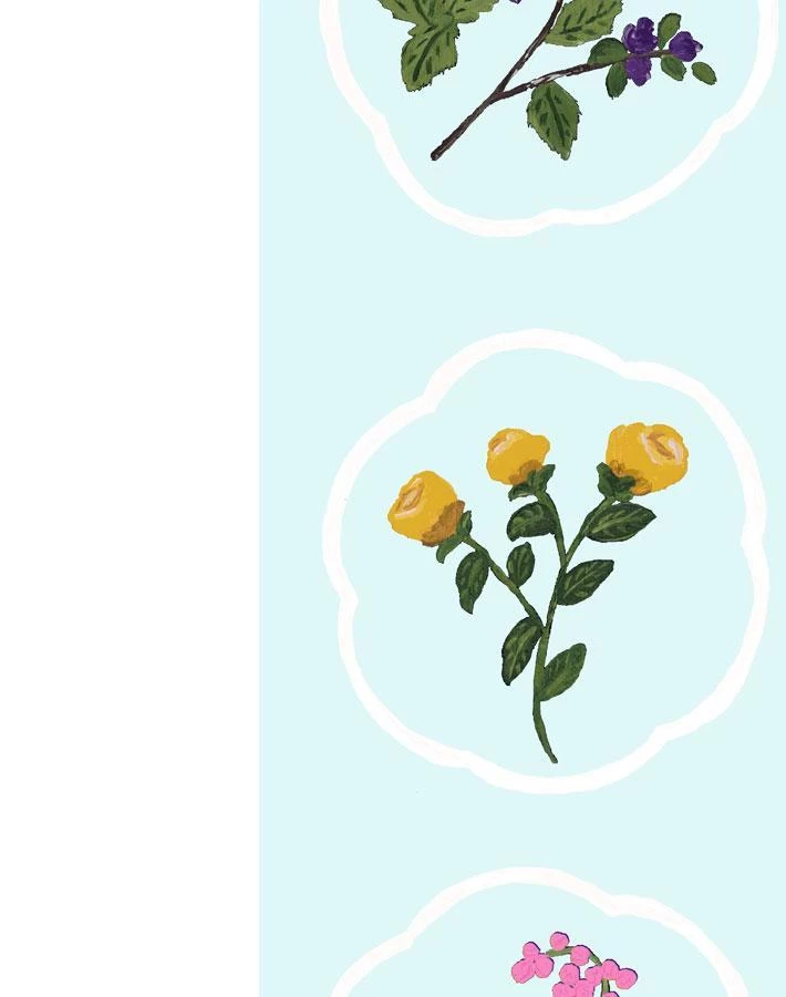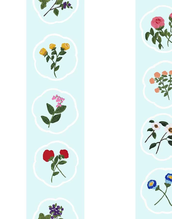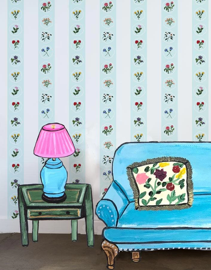 Our Montaigne Stripe pattern is a playful and painterly take on a bold, striped wallpaper. With each set of florals carefully considered, we’ve placed the arrangements over a powder blue stripe offset by a starchy white ready to adorn your breakfast nook or crafting room.