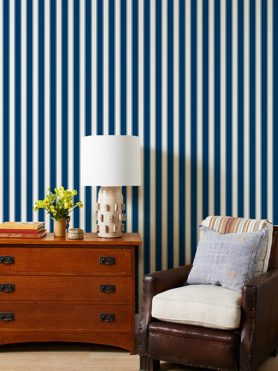 ‘Ojai Stripe’ Grasscloth Wallpaper By Wallshoppe – Navy