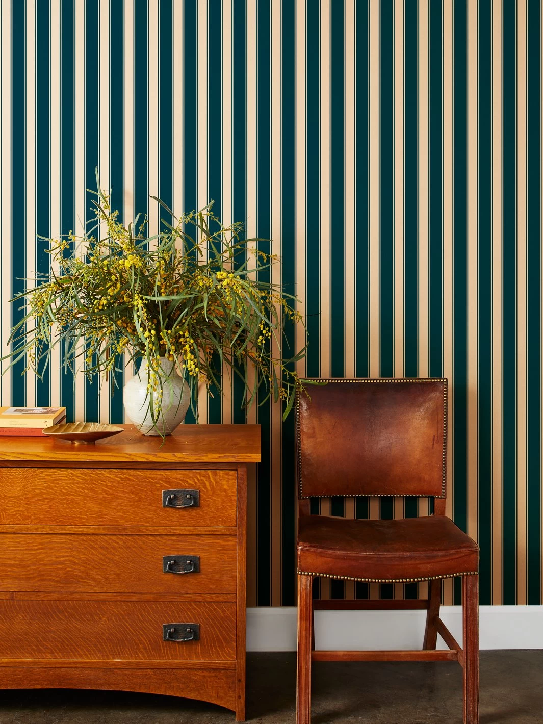 ‘Ojai Stripe’ Kraft’ Wallpaper By Wallshoppe – Cadet Blue