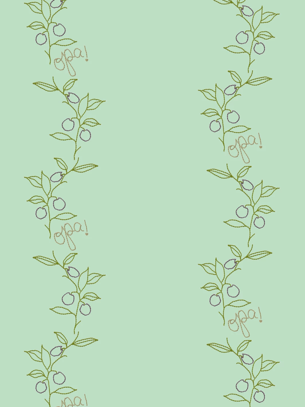 OPA! It’s a way of life. Founder of Lingua Franca, Rachelle Hruska MacPherson brings the classic olive vine to your walls in a whimsical and unique way. Appearing hand stitched, these illustrations add a subtle splash of color with our favorite Greek expression seamlessly weaved into the vertical vines.