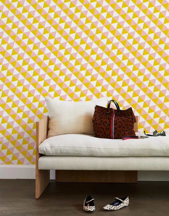 ‘Optic Triangle’ Wallpaper By Clare V. – Marigold / Pink