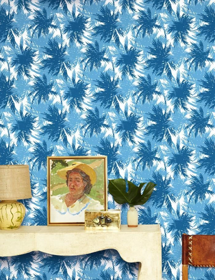 Wallshøppe’s Palm Shuffle wallpaper packs a pop of vibrant color and breezy Bahama’s glam to any home that needs a boost of summer energy. Whether you want to create a bright impactful statement wall, or decorate your living room walls, our Palm Shuffle wallpaper welcomes an exotic jungle into your home.