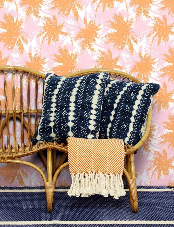 Wallshøppe’s Palm Shuffle wallpaper packs a pop of vibrant color and breezy Bahama’s glam to any home that needs a boost of summer energy. Whether you want to create a bright impactful statement wall, or decorate your living room walls, our Palm Shuffle wallpaper welcomes an exotic jungle into your home.