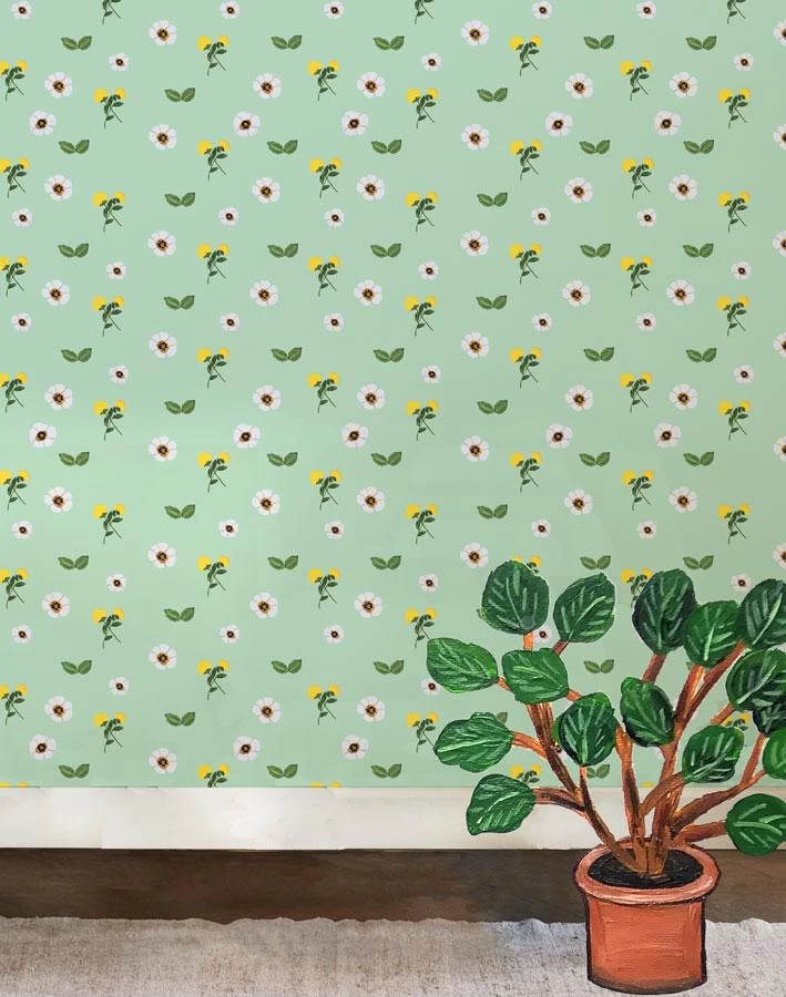 With delicate yellow flowers, white petals and tender leaves, our Pafumee Garden wallpaper evokes the peaceful spaces and midday naps at a lakeside retreat. This floral print over a minty green backdrop was designed to make your space feel even more like home.