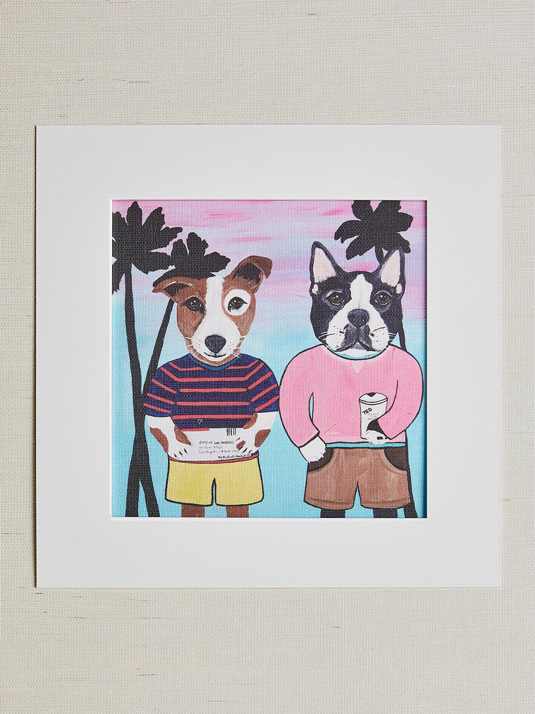 This print by NYC artist Carly Beck features two pooches that will fill your home with delight. Printed on natural woven paper, this high-quality art print ships with a premium ivory mat and repositionable backing, ready for the frame of your choice! Complete the look with our line of wallpaper designed by Carly Beck.