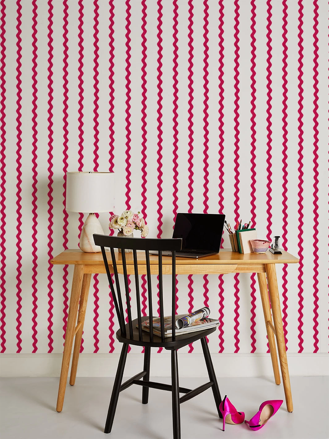‘Ric-Rac Stripe On White’ Wallpaper By Sarah Jessica Parker – Geranium