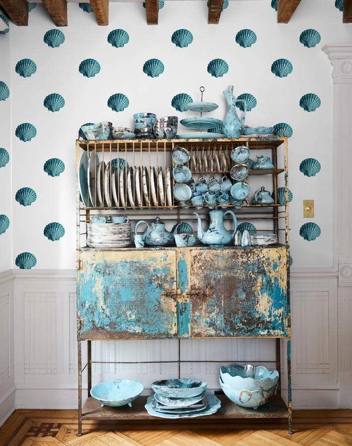 ‘Seashell’ Wallpaper By Wallshoppe – Teal