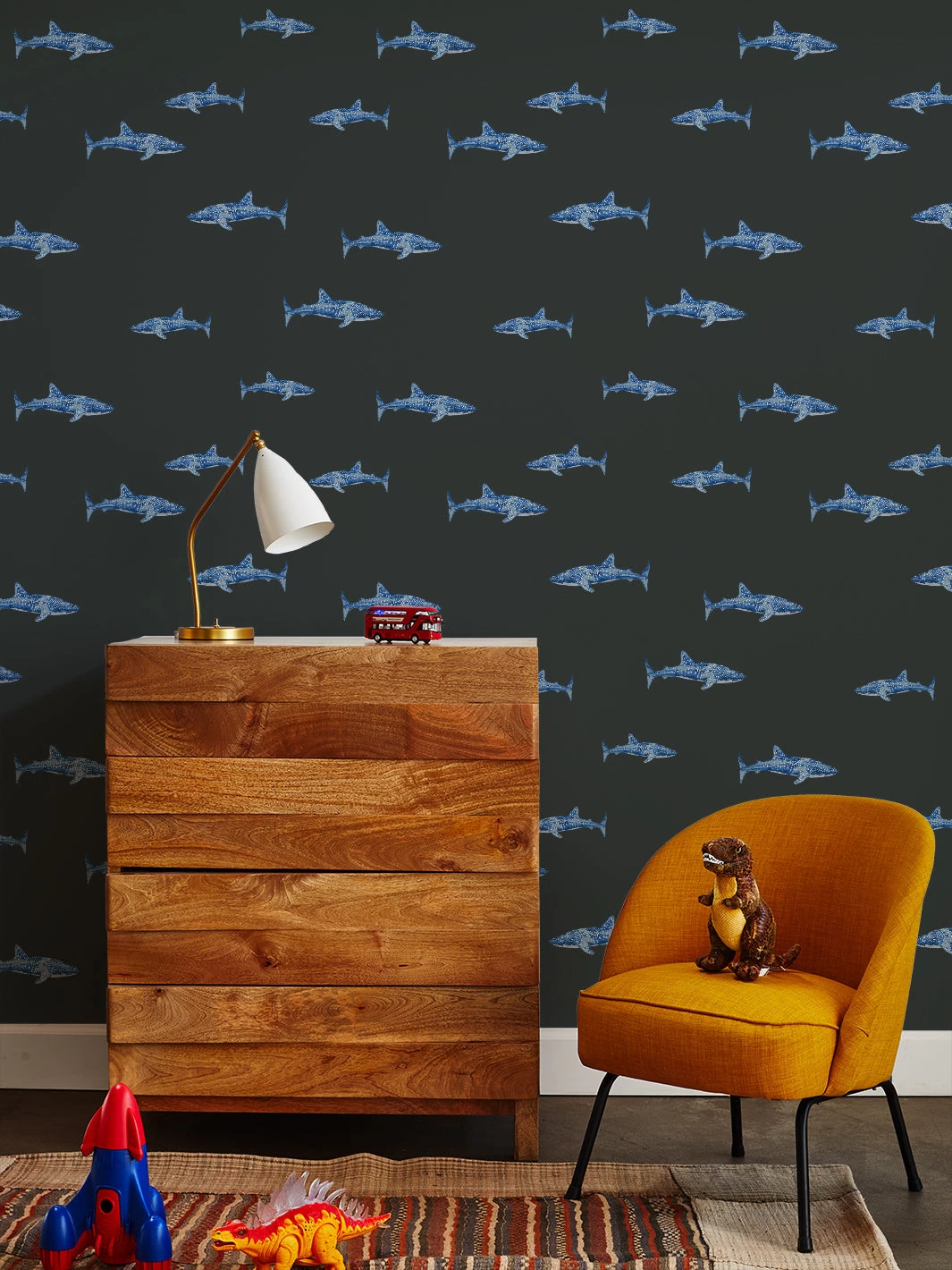 ‘Spotted Shark’ Wallpaper By Tea Collection – Charcoal