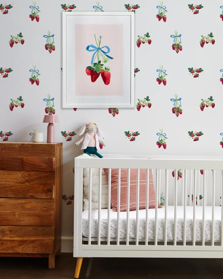 Reminiscent of old English story books, these strawberries are elegantly bunched in a silk ribbon, printed on matte paper with reverse bevels and a crisp white frame.