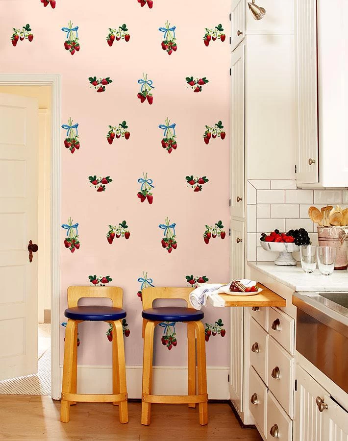 Renowned designer Nathan Turner collaborated with us on this fruitful wallpaper. These perfect strawberry bunches show your hospitality and make your home a warm place.