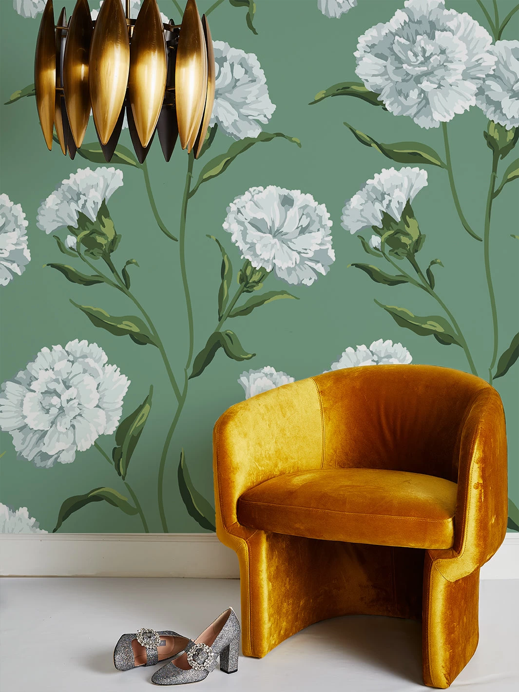 ‘Townhouse’ Mural Wallpaper By Sarah Jessica Parker – Silver On Sage
