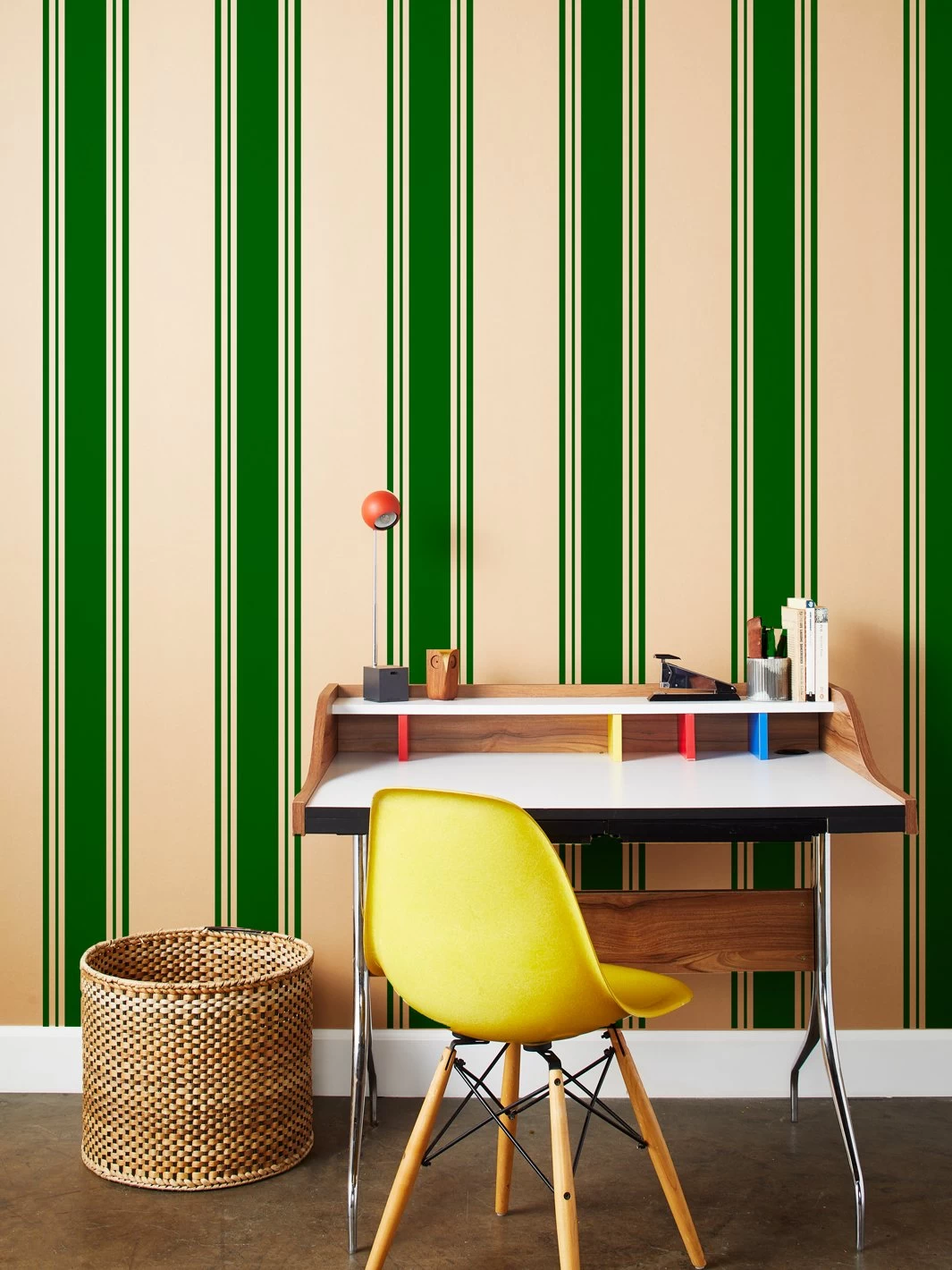‘Yorkshire Stripe’ Kraft’ Wallpaper By Wallshoppe – Green